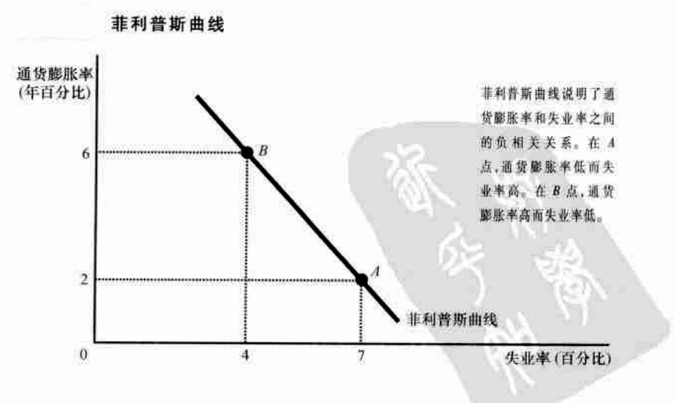 菲利普斯曲线描述了通货膨胀和失业之间的负相关关系。
