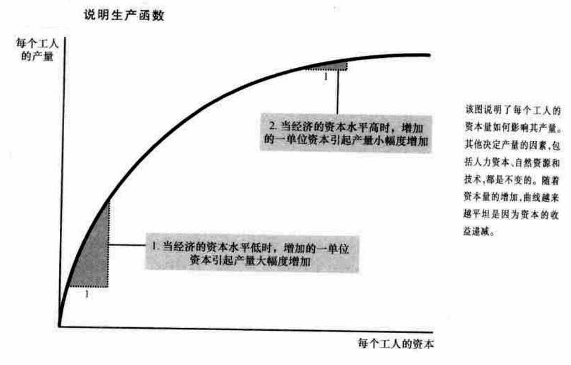一个经济拥有的资本越多,该经济从新增加的一单位资本中得到的产量的增加就越少。
