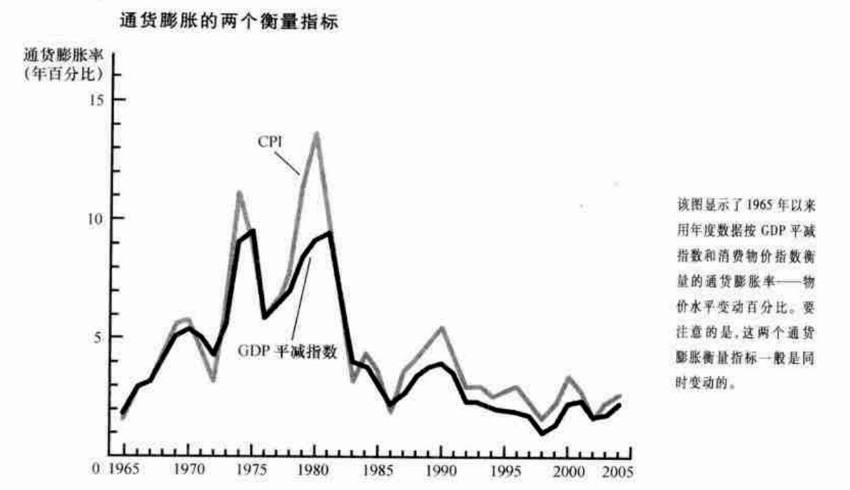 此外,消费物价指数用固定的一篮子物品,而GDP平减指数一直随GDP构成的变动而自动地改变物品与劳务的组合。