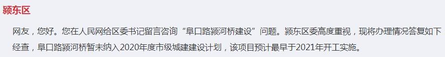 目前阜口路颍河桥暂未纳入2020年度市级城建建设