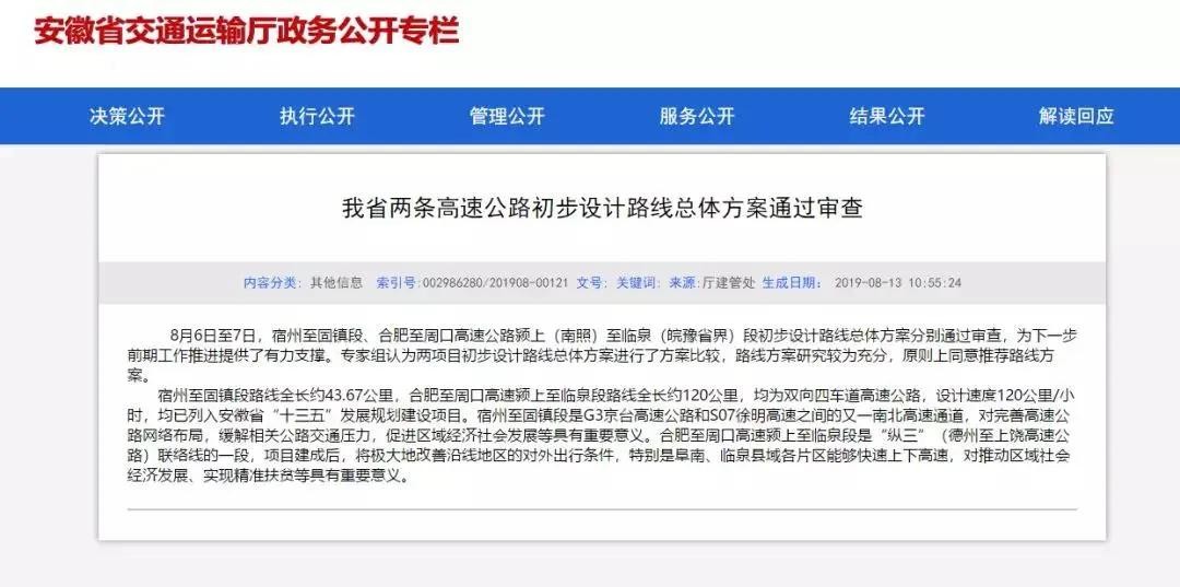 5、阜阳至淮滨高速公路安徽段施工图设计获批