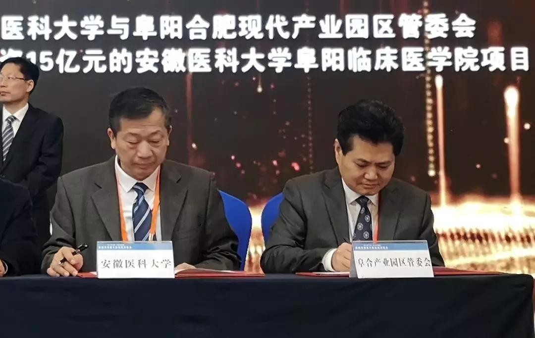今年1月,阜合产业园管委会与安徽医科大学正式签约二期项目,确定合作建设安医大阜阳临床医学院及医技综合楼等项目。
