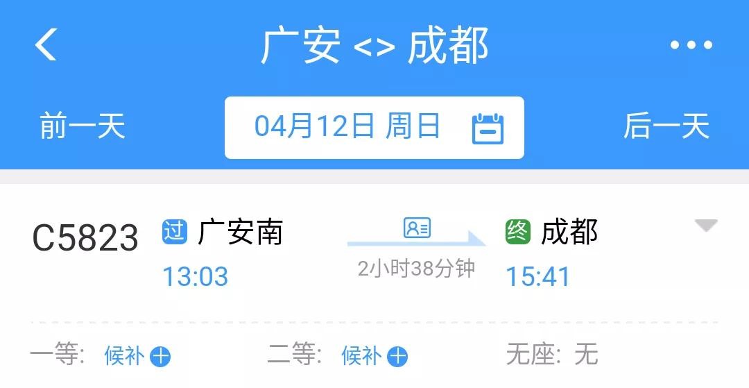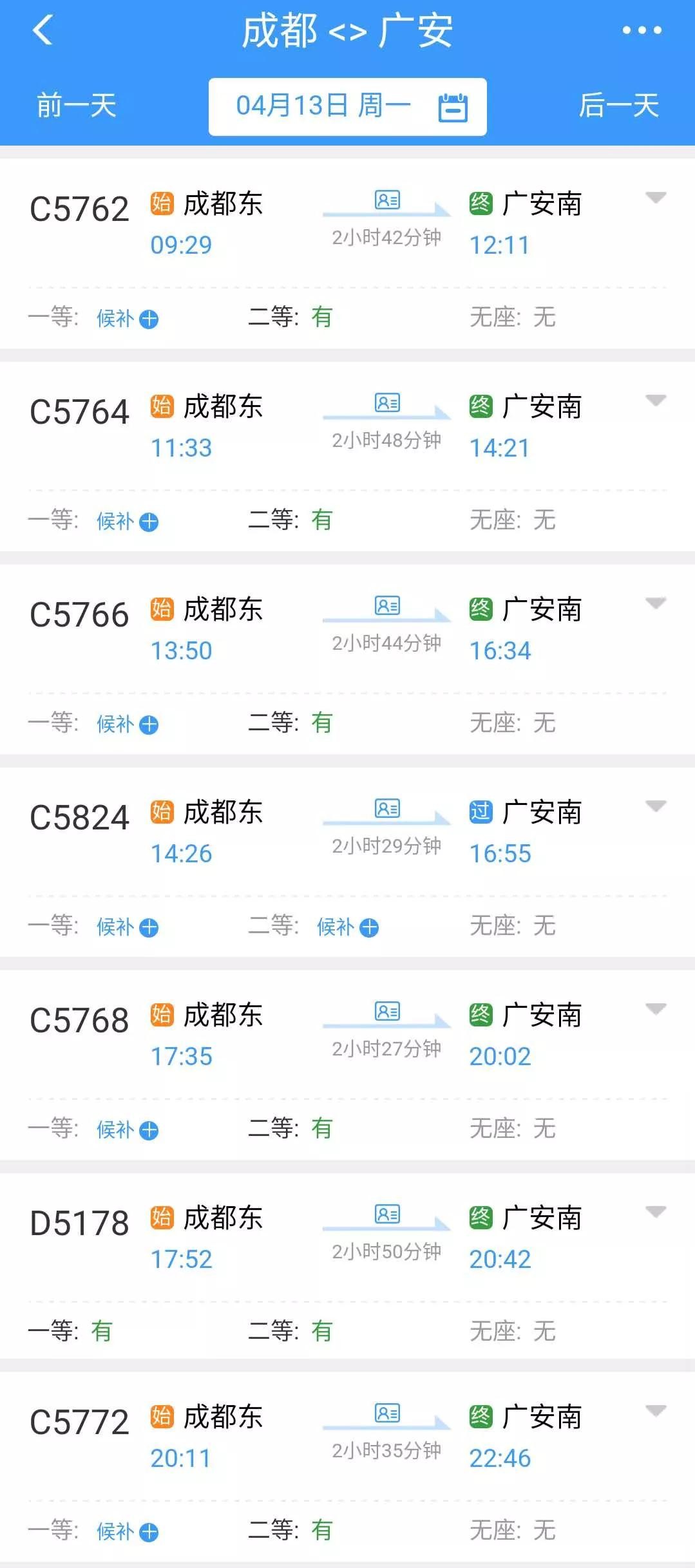 4月12日起,广安到成都动车增至7个班次,时间恢复至2个多小时
