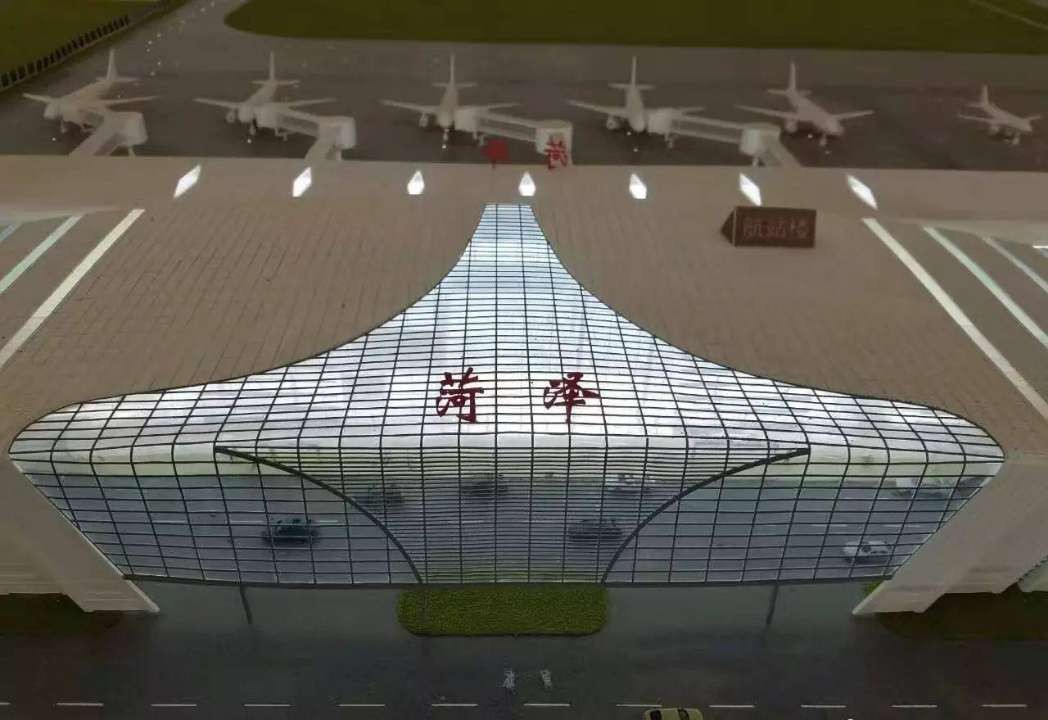 据菏泽牡丹机场官方回复:菏泽机场2018年被国家民航局正式命名为菏泽牡丹机场,该项目被列入国家重点推进建设的11个机场项目之一,项目总投资18.23亿元,占地2306亩,本期年旅客吞吐量90万人次,年飞机起降9184架次。项目包括航站区和飞行区两大部分。航站区分为航站楼、航管楼、消防中心、货运站、航油区、动力中心、服务中心和广场8个功能区,航站楼面积10916平方米,设4个登机桥,9个站坪机位。远期扩建T2航站楼,面积4.1万平方米,站坪机位达到26个;飞行区按4C标准设计,跑道长2600米,宽45米,可起降A320、B737、C919等大型客机。远期按4E标准预留,跑道向北延长600米,达到3200米。