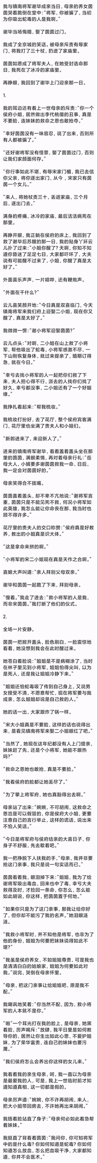 其实,这个真相是在上一世我死之前知道的,我在家庙里病得奄奄一息,我问母亲:“为什么,我是你的女儿,为什么要如此对我?”