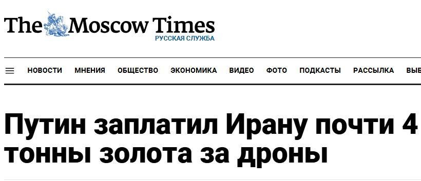 普京向伊朗支付近4吨黄金购买无人机