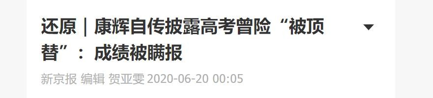 新京报:还原|康辉自传披露高考曾险“被顶替”:成绩被瞒报