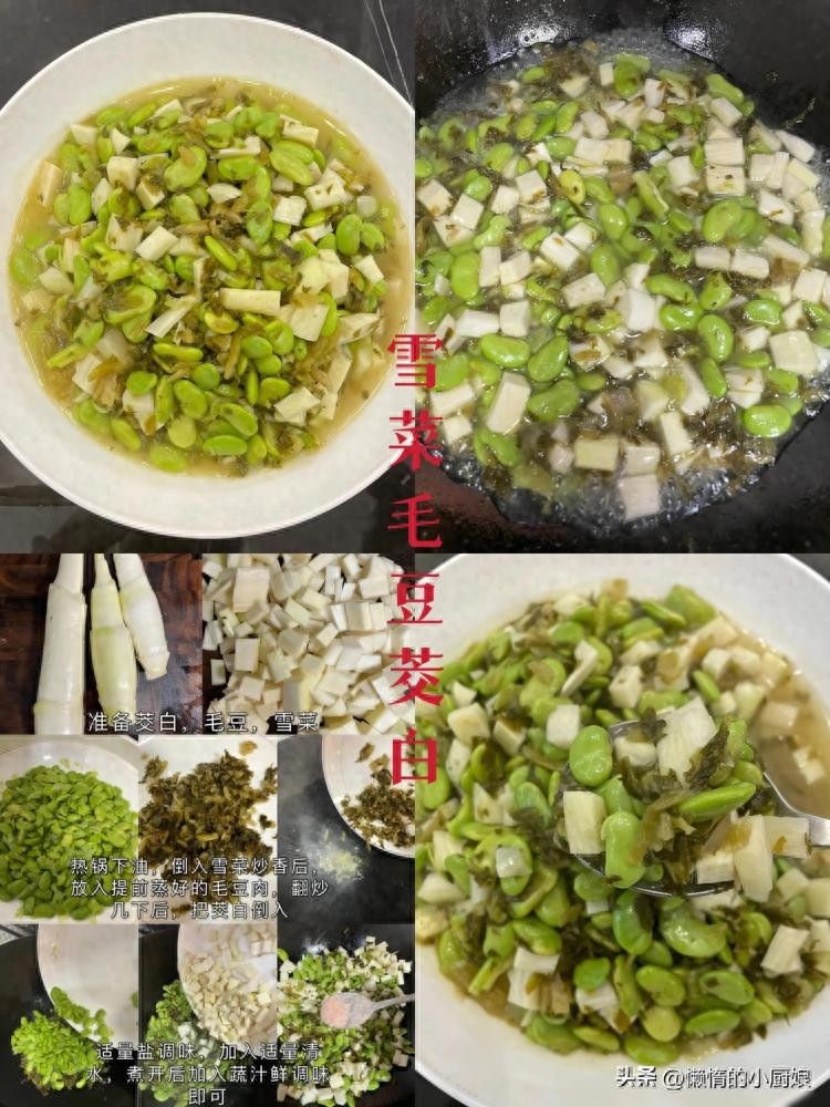 这道菜还加入了一些雪菜,这种酸辣的降火食材,可以帮助我们消食去腥,是非常好的一道主食+下酒菜!