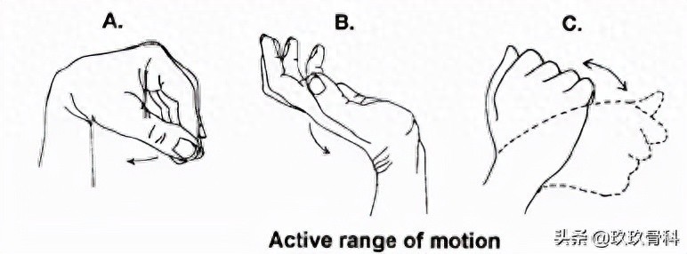 A.屈曲:轻轻地向前弯曲手腕,保持5秒钟,重复10次,做3套。
