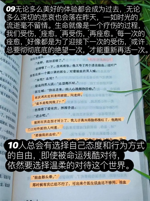 10人总会有选择自己态度和行为方式的自 由,即使被命运残酷对待,依然要选择温柔的对待这个世界。——余华《活着》