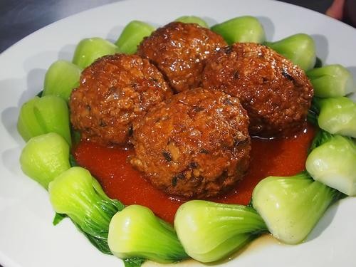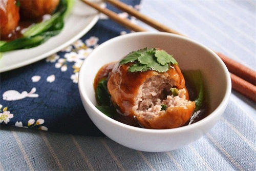做狮子头的肉选材也很有讲究,要求有肥有瘦,吃起来肥而不腻、软嫩爽口,搭配上翠绿的青菜,鲜艳的色彩加上扑鼻的香味,光看卖相就让人口舌生津、胃口大开。