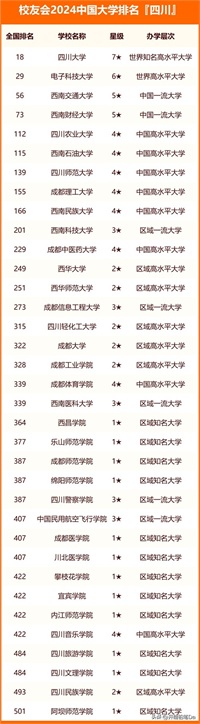 而根据校友会最新发布的四川省大学排名显示,四川大学、电子科技大学等位居全国前30强之列,它们的录取分数线大部分在600分以上,有一定的报考门槛。