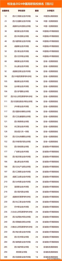 而高职院校排在全国前三十之内的也有三所,其中四川工程职业技术学院排在最前面。值得注意的是,四川工程职业技术学院如今已更名为四川工程职业技术大学。