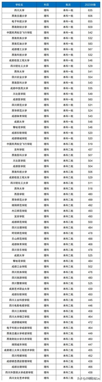 因为不同院校在不同地区的录取分数、录取批次甚至是录取科目都不一样,因此碍于篇幅限制,这里小编就仅列举四川本科院校在省内的理科录取分数情况。