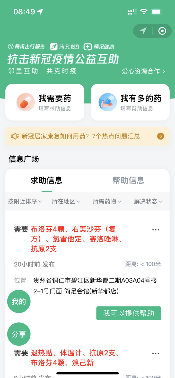 近日,微信上线抗疫互助小程序。该小程序会自动定位,按距离由近到远显示求助信息。并及时更新是否有人联系过求助者、获得解决情况等等。