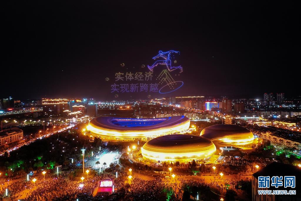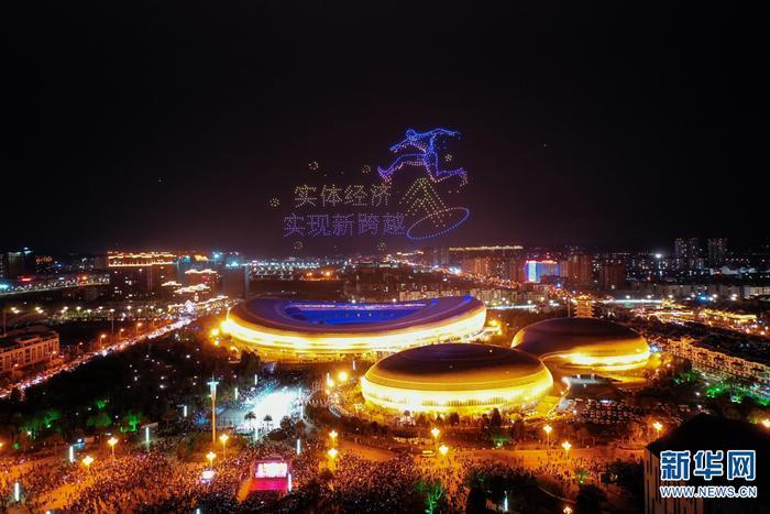 云南曲靖上千架无人机灯光秀点亮城市夜空