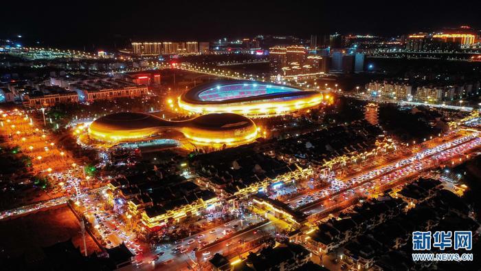 上千架无人机表演灯光秀(2月2日摄)。新华网发(孙文来 摄)
