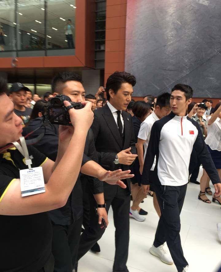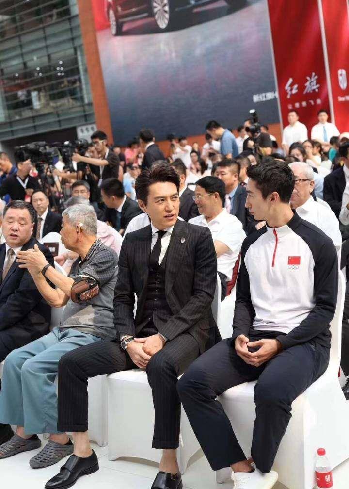 这华丽丽的大长腿,身高186cm绝无虚假!旁边的武大靖官方身高是182cm,而靳东明显比他高很多。要知道,运动员身高不能作假的。