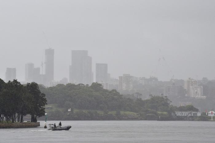 4月7日,警察乘快艇冒雨在澳大利亚悉尼的悉尼湾上巡逻。新华社/法新