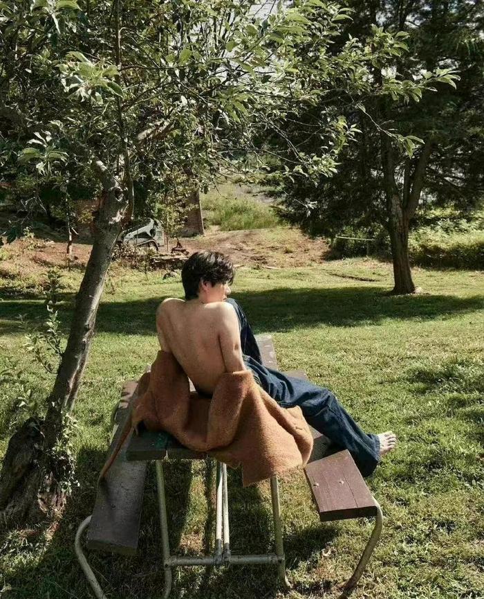 昨(8)天他本人更在个人IG加码分享两张照片,一张彩色,一张黑白,只见穿着牛仔裤、坐在户外长椅上的他,摊开冬天大衣,赤裸着上半身,背对镜头露出结实的背膀线条,让网友们看得心痒痒,纷纷敲碗:「转过来吧!」、「想看前面」、「里面一定更多精彩美图」、「买杂志看更多」。