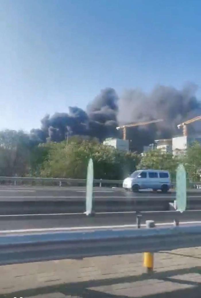 “早上7点左右我路过东五环的时候,看到路边冒起了浓烟。”市民赵先生发来了拍摄的多段视频,浓烟滚滚,飘起十多米高。