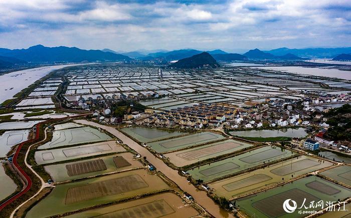 人民网台州11月3日电 (孙鹏)日前,空中俯瞰台州市三门县万亩养殖塘,美景如画。
