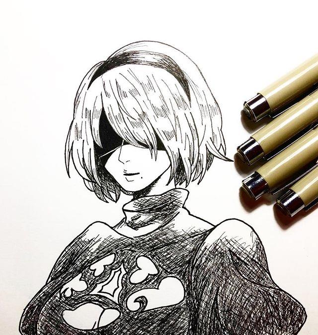 针管笔手绘动漫人物,画得好精致